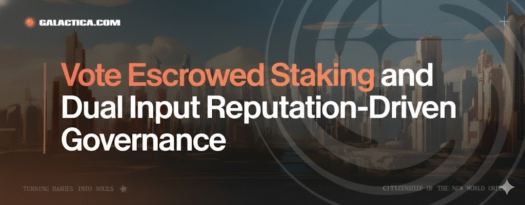 As reflected on many occasions in the literature we have published in our research and newsroom sections (e.g. here and here), the relationship between one's token holdings and the resulting voting power is key to understanding the distributional dynamics in a political system such as a DAO. In the case of Galactica.com, we can leverage our identity stack to have a real world human as subject in our governance framework. Humans can have reputation, a product of some data points that are deemed important in amplifying one's voice relative to the others in relation to a given matter at hand. But one's token stake is likewise important. Hence, we are introducing a system where both, one's veGNET stake ('ve' to account for lock up time) and one's reputation factor in calculating both, one's voting power, and, importantly, one's weight in the UBI distribution process. Please, refer to this paper for specification of our vision for UBI. One can read more about ve token systems for example here. More on Galactica's "ve" specification below. This proposal outlines the transition from the current GNET staking rewards to a Universal Basic Income (UBI) distribution system powered by the new gUBI token.